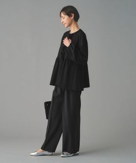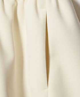 同素材のパンツやスカートとセットアップでの合わせで、統一感のある装いに。