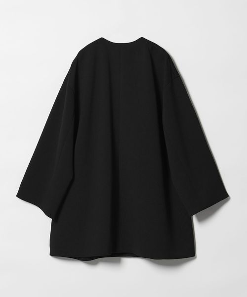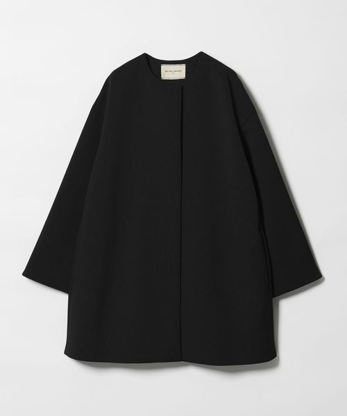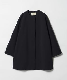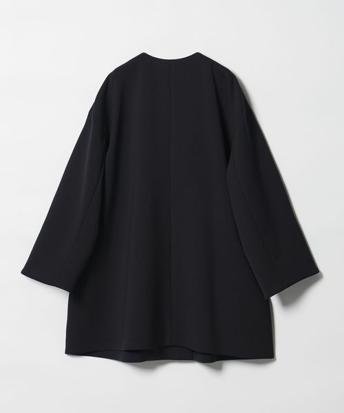 素材の風合いを活かした裏地なし仕様のミドル丈コート。