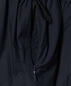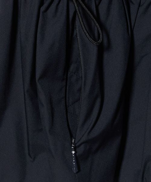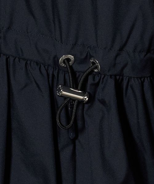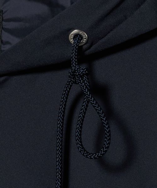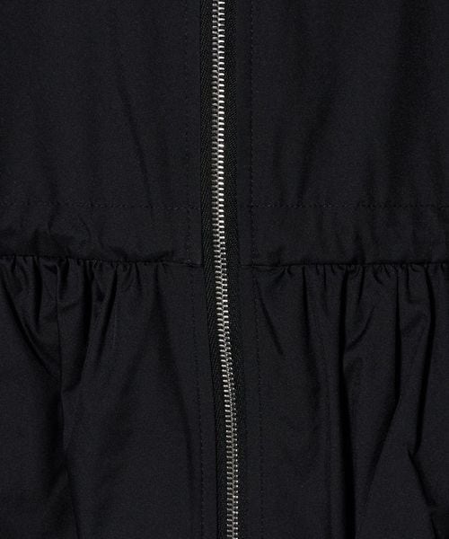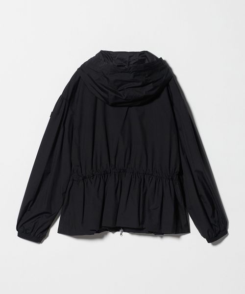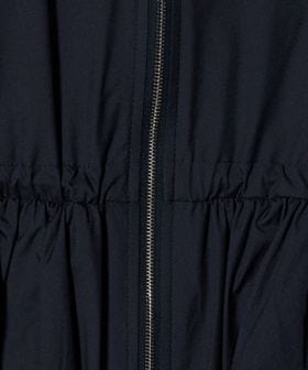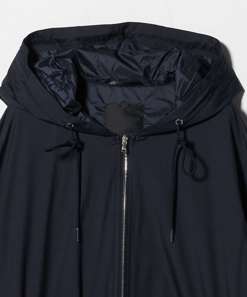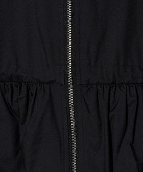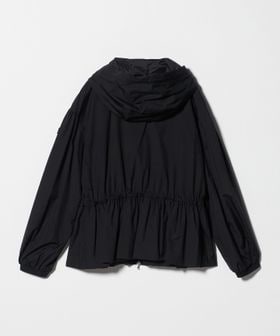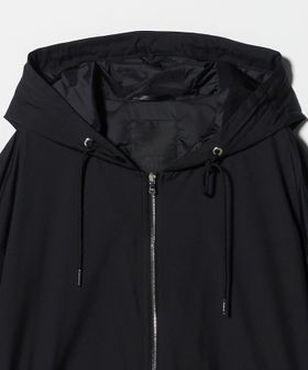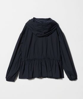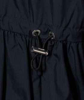 フードの付け根は首元に沿うように設計し、袖は肩を少し落としたデザインにすることで、ギャザーによる肩周りのボリュームを抑えています。