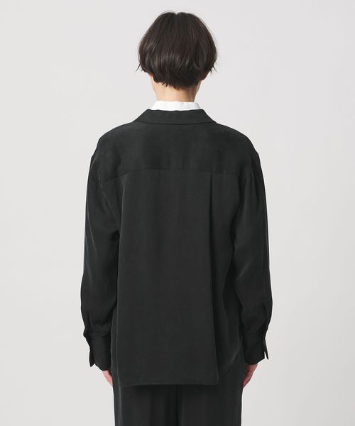 前裾をタックインしてニュアンスを効かせた着こなしもおすすめ。