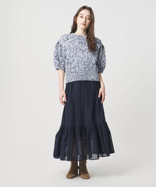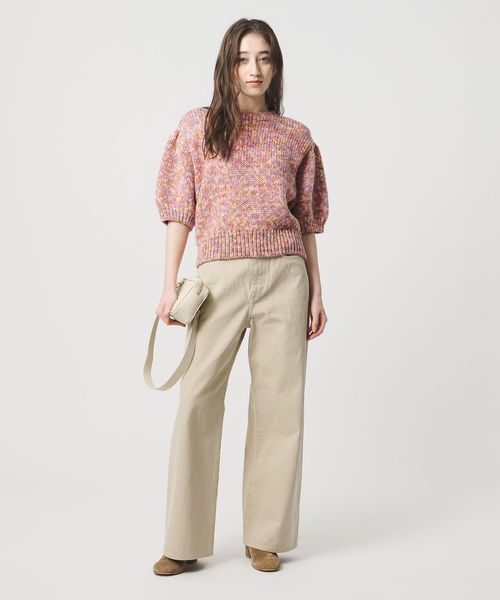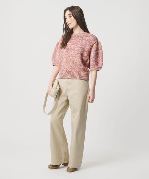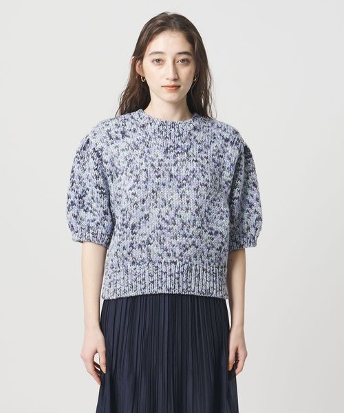 素材の風合いを活かしたざっくりとしたハーフスリーブニット。
