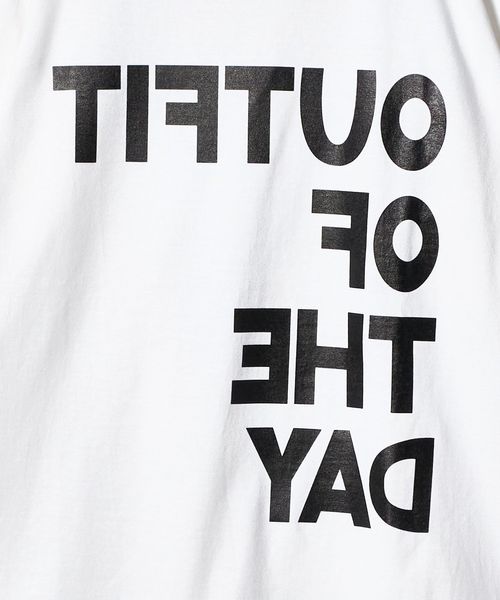 メッセージは「OUTFIT OF THE DAY(今日のコーデ)」を意味し、鏡越しのスタイリング撮影をイメージして反転文字でプリント。