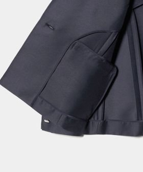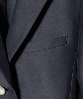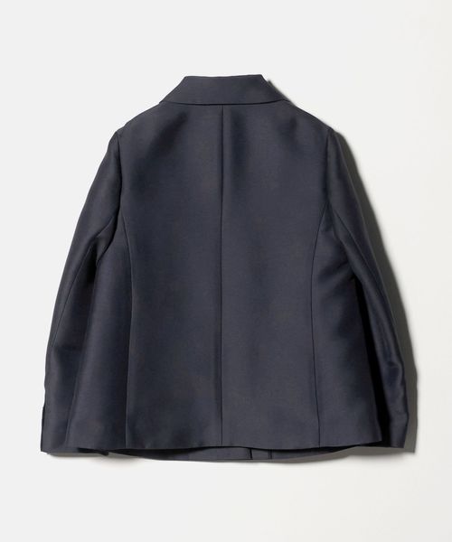 クラシックな紺ブレザーを、軽やかなハリ感とショート丈で新鮮にアレンジ。