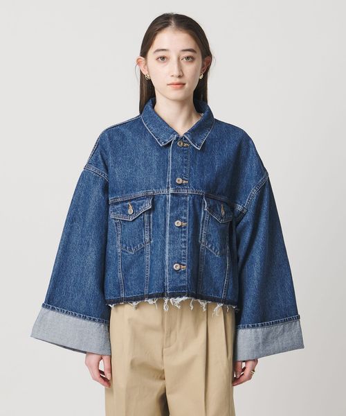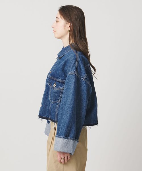ムラ糸デニムを使用したクロップド丈のデニムジャケット。