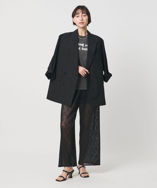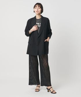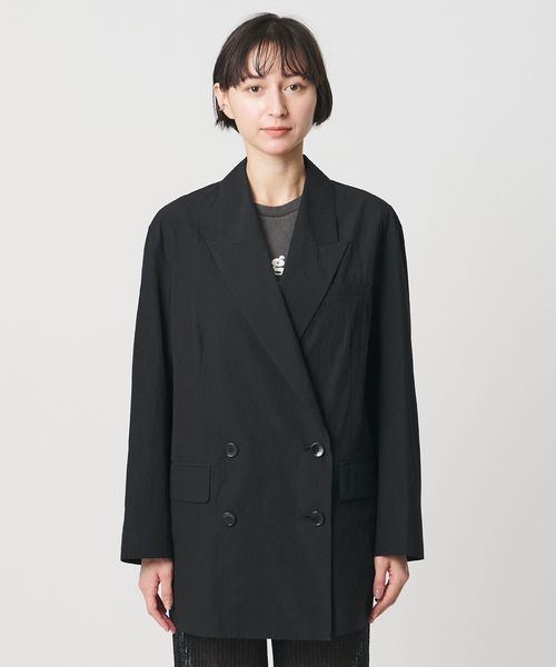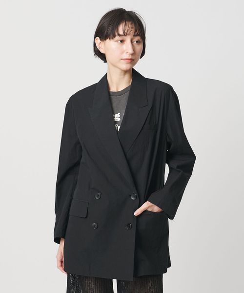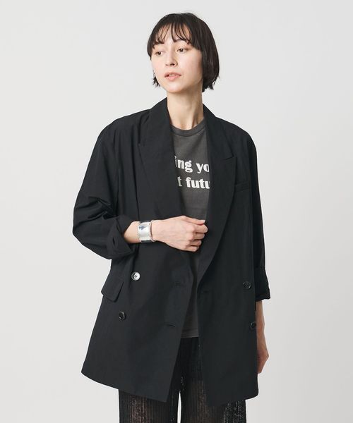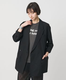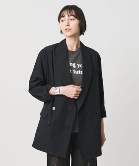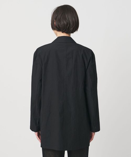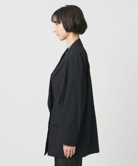 ゆるやかなオーバーシルエットと大きめのピークドラペルがマニッシュな雰囲気を引き立てる一枚仕立てで、軽い羽織りとしても活躍する一着です。