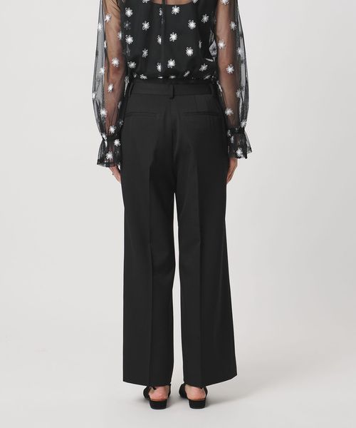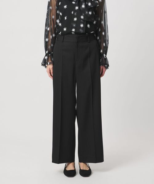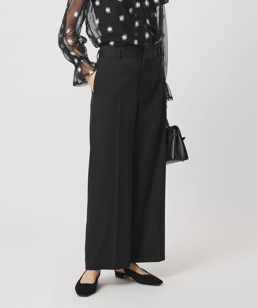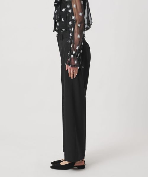 ノータックでウエストからヒップまではすっきりしたシルエットのストレートワイドパンツ。