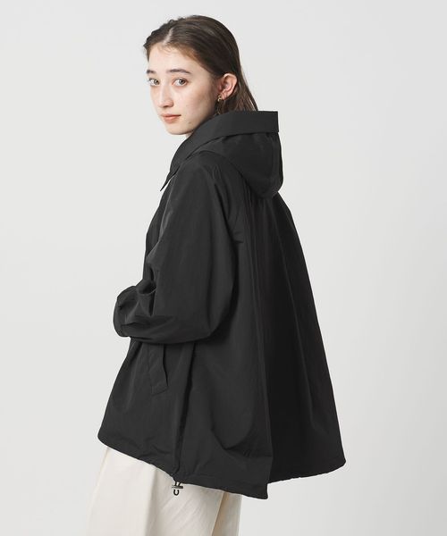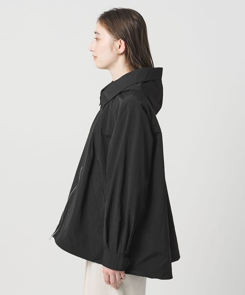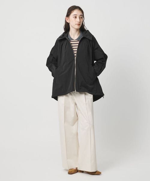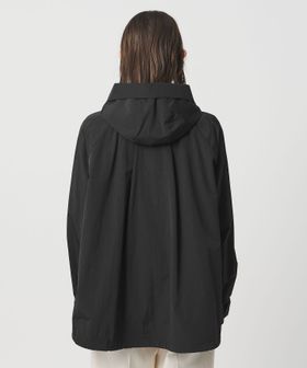 フードのギャザーは固定し、ドローストリングをなくしてすっきりと。前後差のあるシルエットに調整し、袖は細めのカフス仕様でスマートな印象に仕上げました。