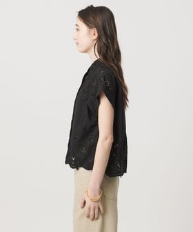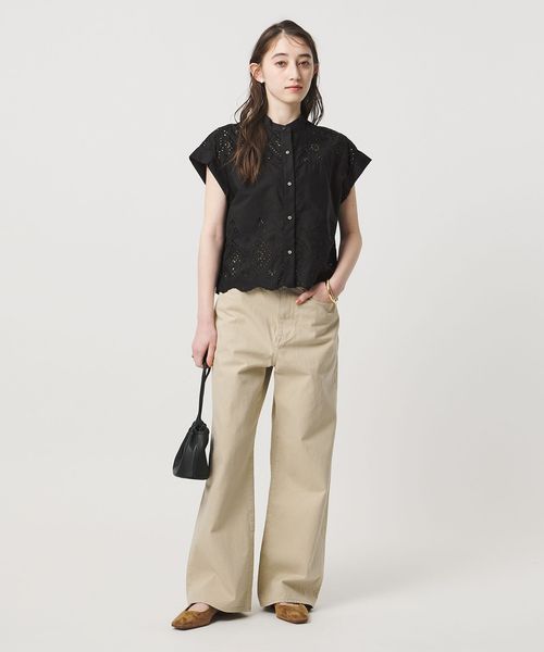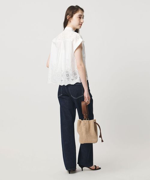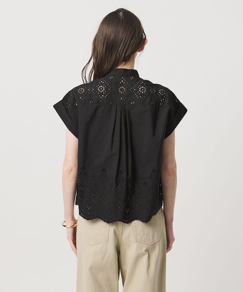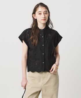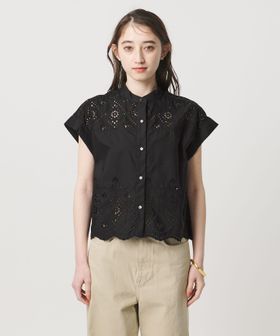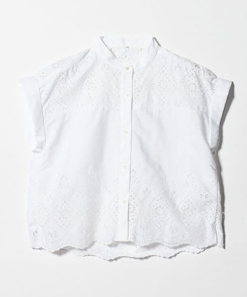 レースの甘さとすっきりとした襟元のバランスがよく、シャツのきちんと感とブラウスの可愛らしさを併せ持つ一枚です。