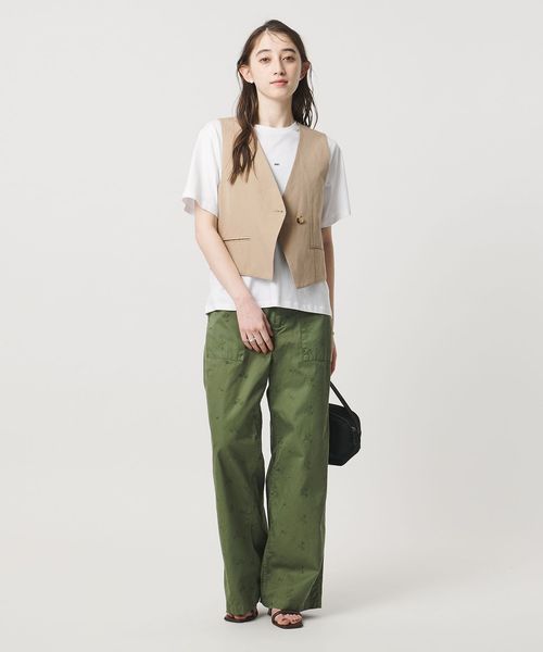 シンプルなカットソーやシャツと合わせたスタイルがおすすめ。