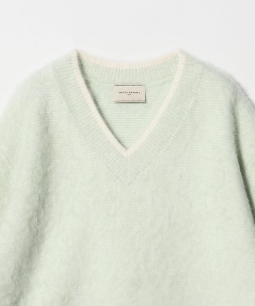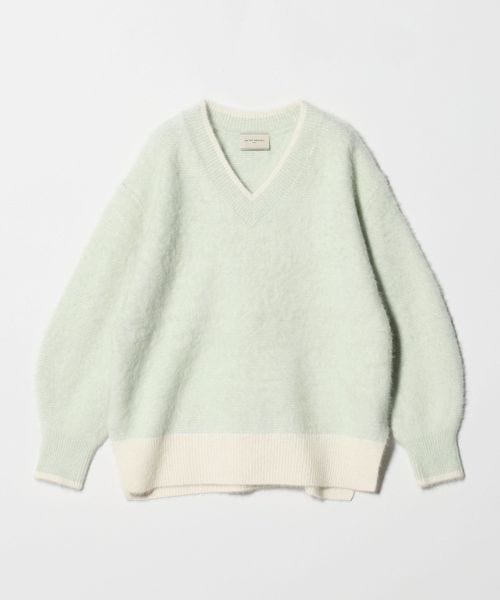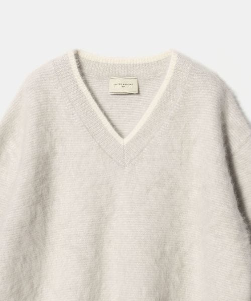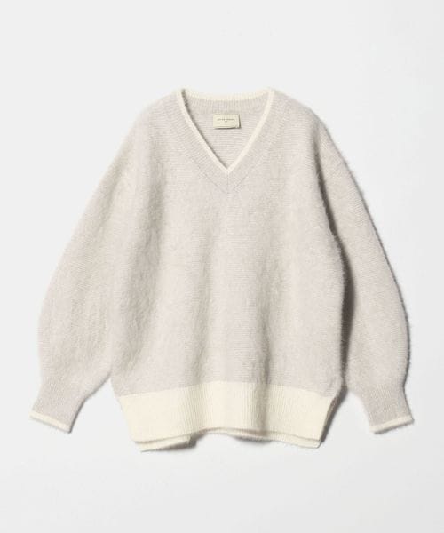 着回しのしやすいボックスシルエットでデコルテ周りを美しく見せてくれるVネックニット。