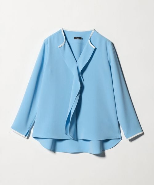 シャープな印象のフリルに、カラートリミングを施したブラウス。