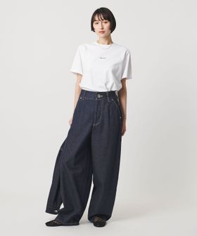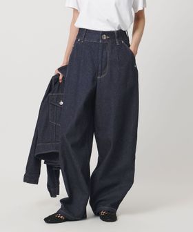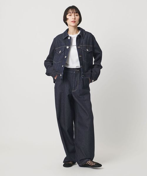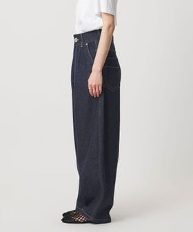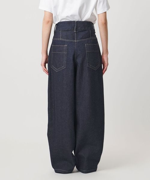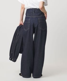 ウエストはカーブ仕様、背面にはバックヨークの切り替えとダーツを入れ、デニムらしい表情を残しつつも、スラックスのパターンメイキングで仕立てた一着です。