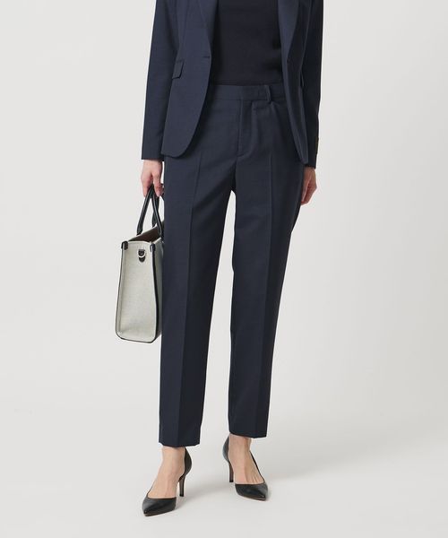 全体的にすっきりとした、ノータックの細身テーパードシルエットのパンツ。