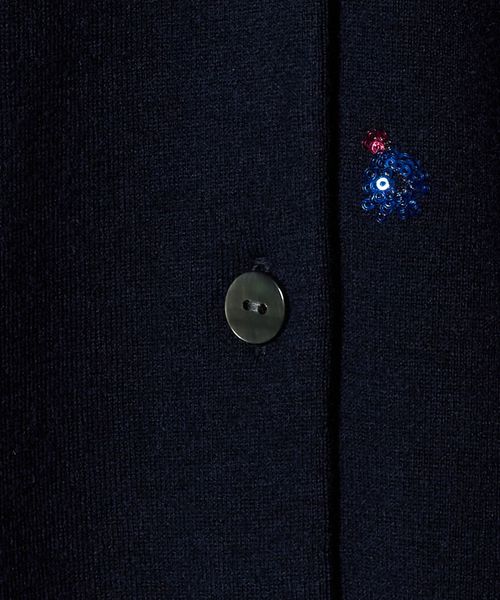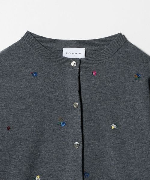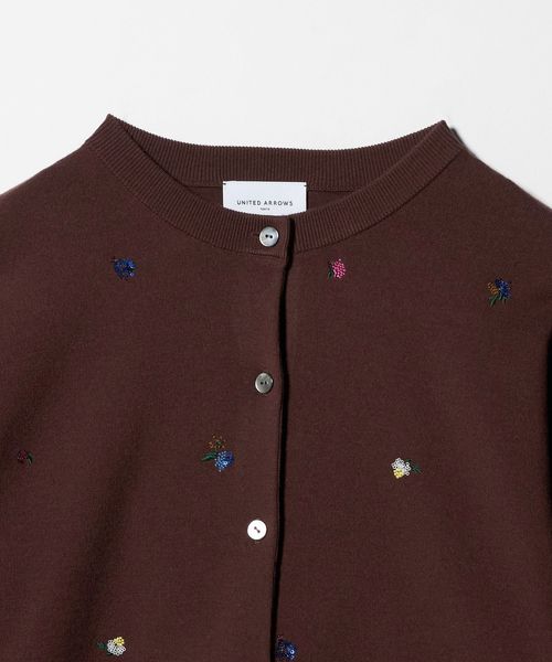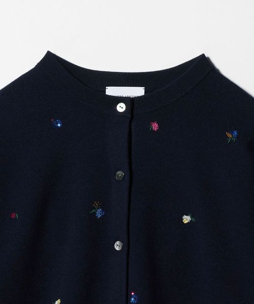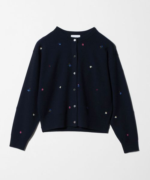 繊細な花柄刺繍に散りばめられた小さなスパンコールが、さりげない輝きを添えるカーディガン。