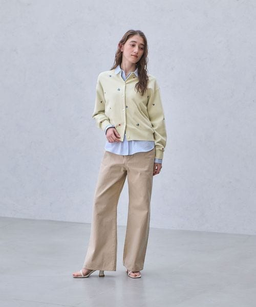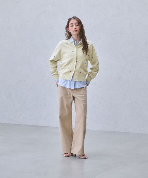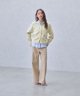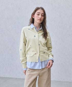 繊細な花柄刺繍に散りばめられた小さなスパンコールが、さりげない輝きを添えるカーディガン。