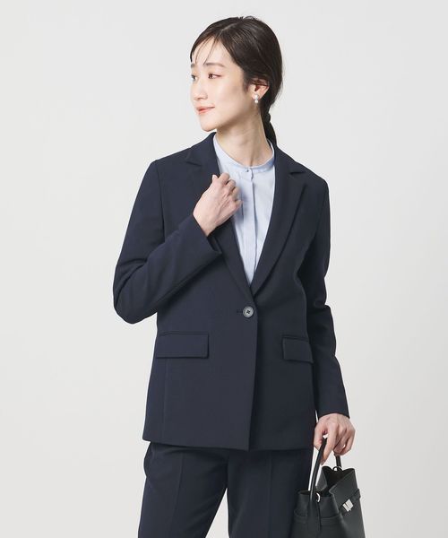 すっきりとした1つボタン仕様でコンパクトなシルエットが特徴のテーラードジャケット。