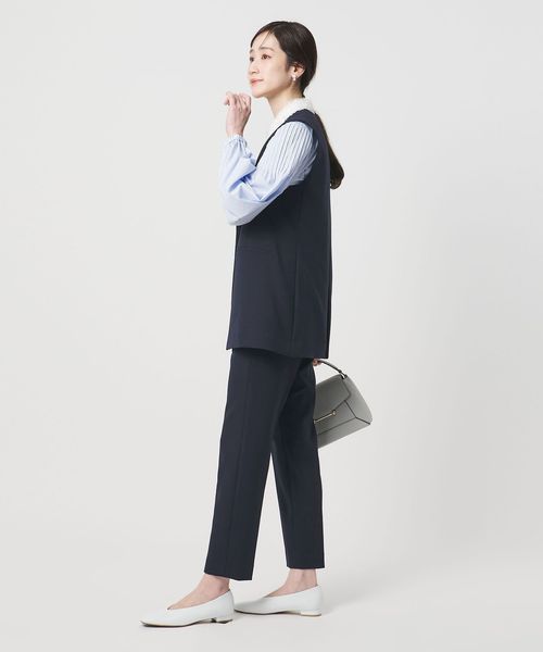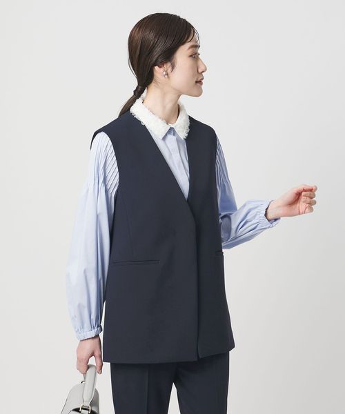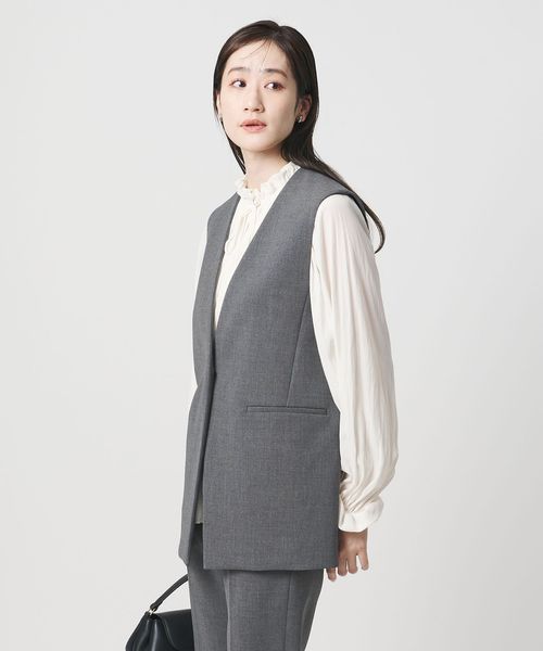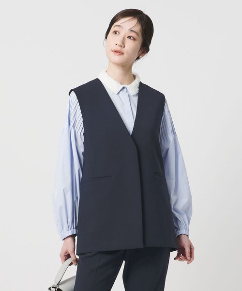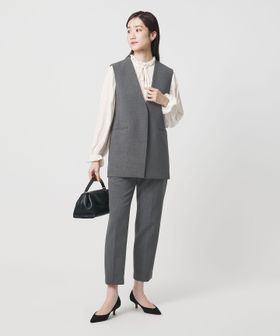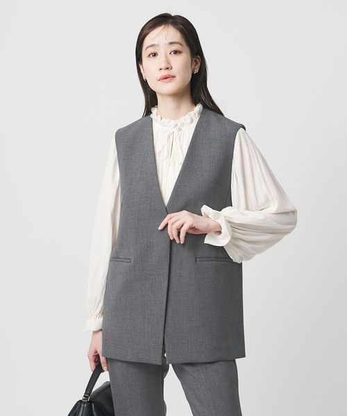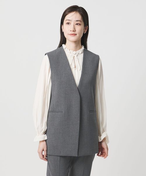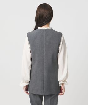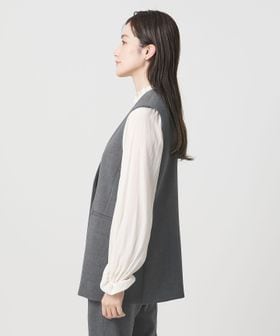 ウエストを絞らないボックスシルエットで、やや長めの着丈がメンズライクな印象を与えるベスト。