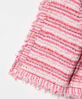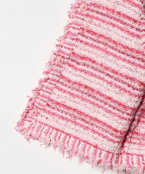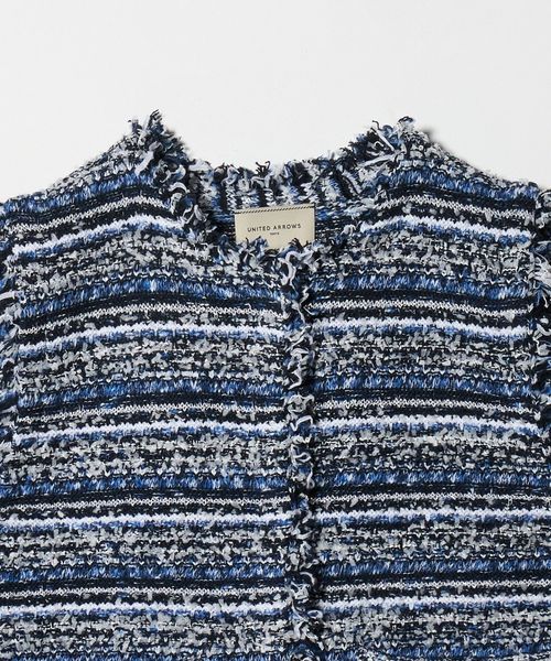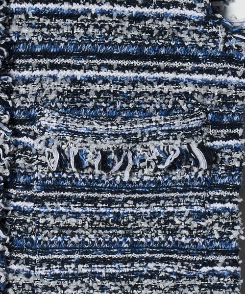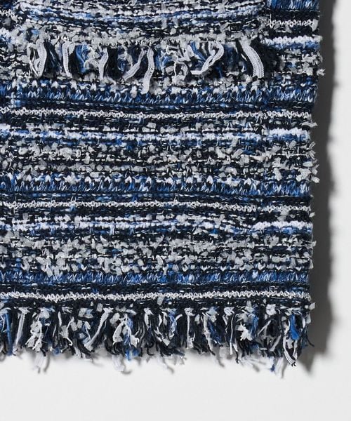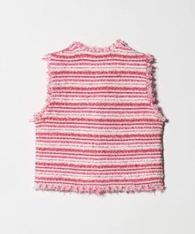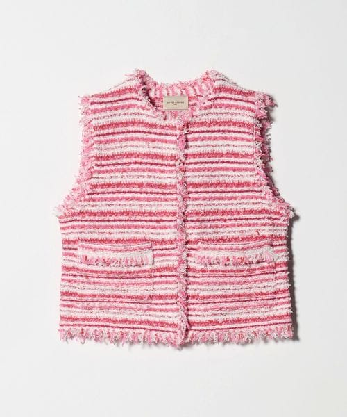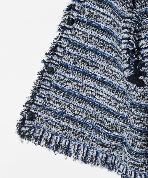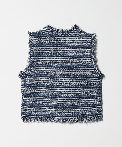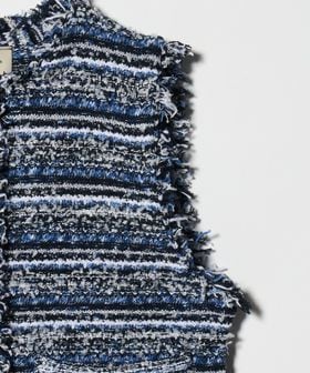 フリンジディティールがアクセントになるツイードライクベスト。