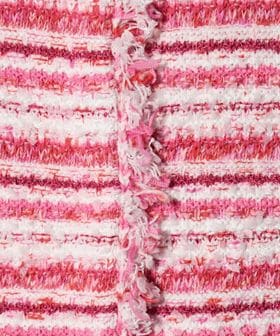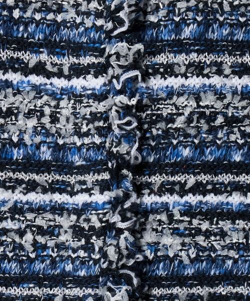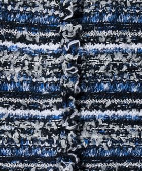 インポートのラメコード糸やテープヤーン、フリンジ糸など、表情の異なる5種類の糸を編みこんだ華やかな印象のニットツイードライク編地。
