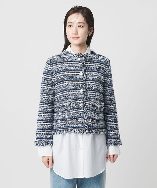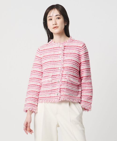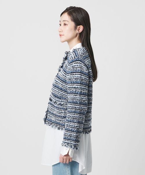ツイードライクで奥行きのある華やかな印象のニットカーディガン。