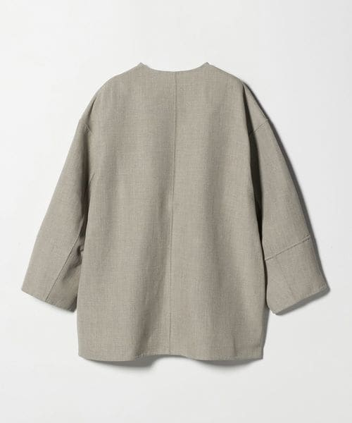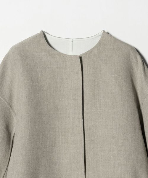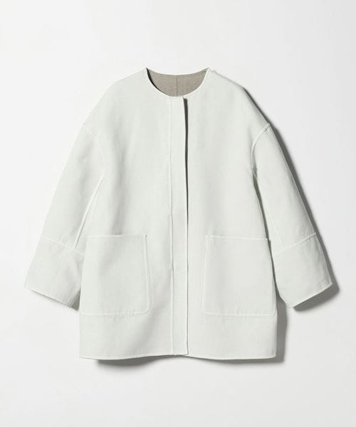 リバー素材の風合いを活かしたノーカラーのリバーコート。