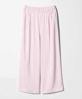 ウエストは平ゴム仕様で着脱がしやすく、2タックとギャザーを入れることで程よいボリューム感を持たせたワイドパンツ。