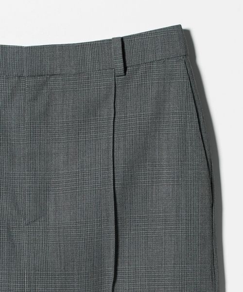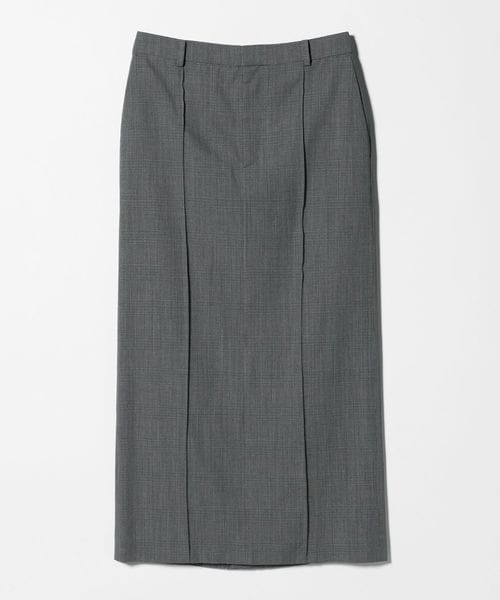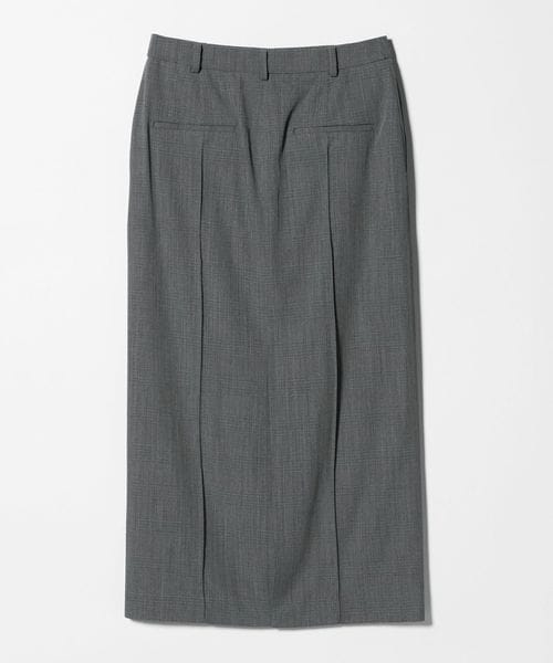 ベルトループ付きのウエストベルトと、ベルト下から施したプレスがポイントのストレートロングスカート。