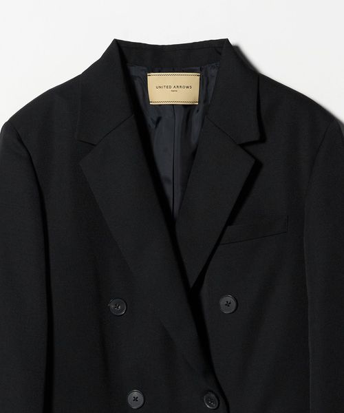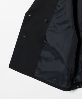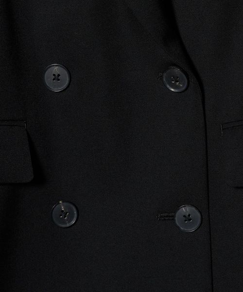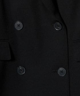 ピークドラペルのダブルブレスト6ボタンで、メンズライクな印象。