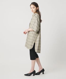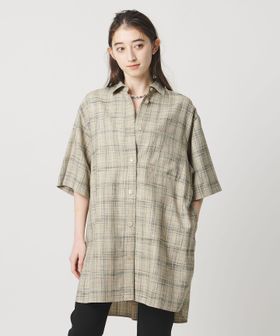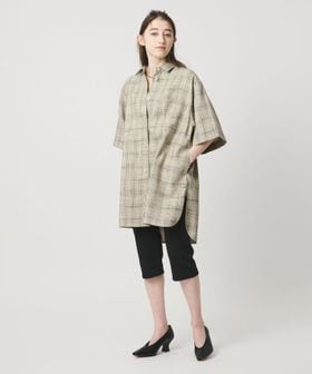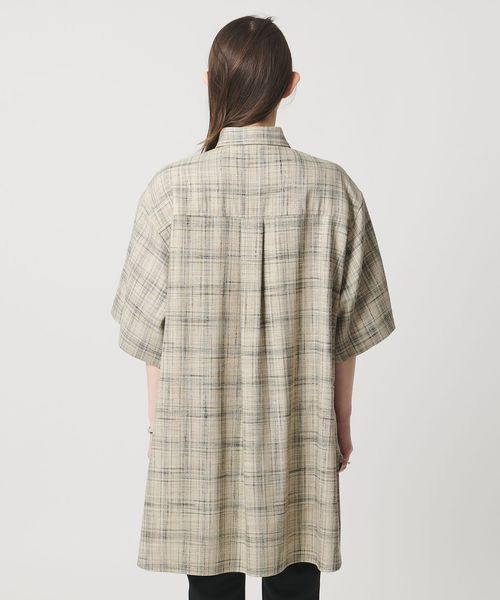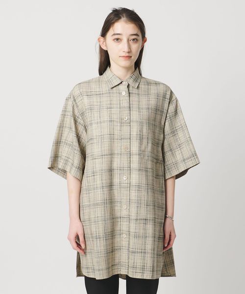 肩を落としたゆったりめのシルエットで、着丈は少し長めのチュニックシャツ。