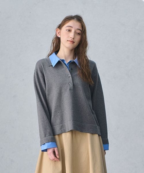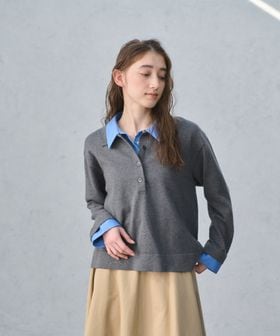 ポロニットとシャツを重ねたような、トレンド感のあるレイヤードスタイルが一枚で完成するトップス。