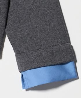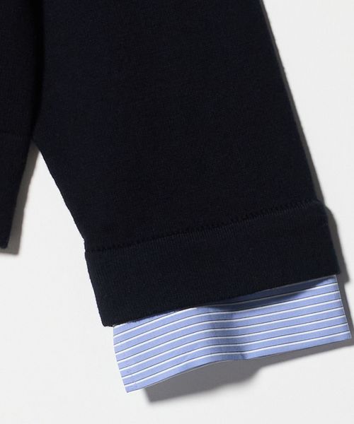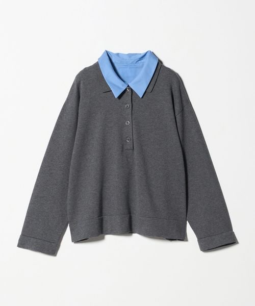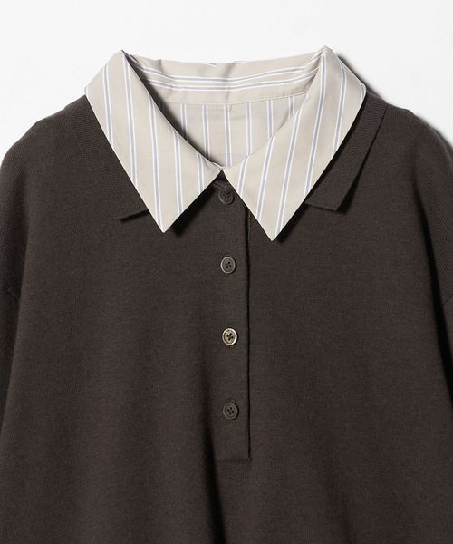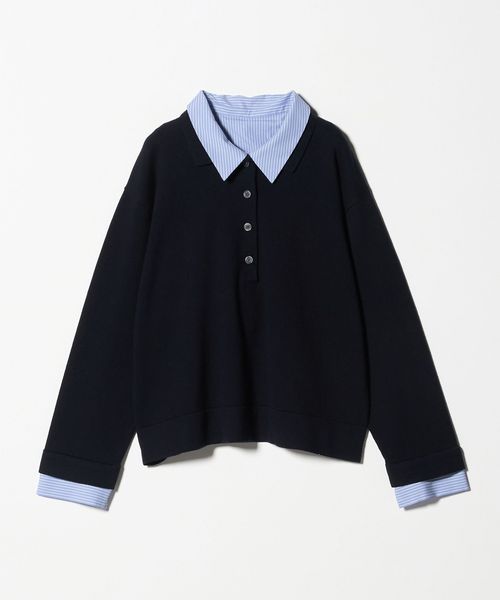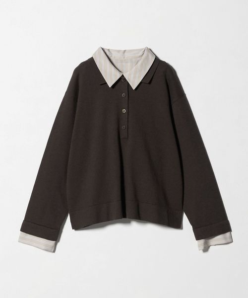 ポロニットとシャツを重ねたような、トレンド感のあるレイヤードスタイルが一枚で完成するトップス。
