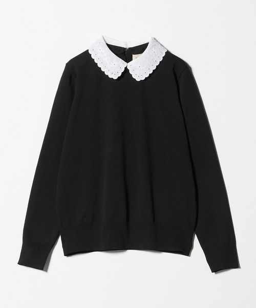 襟を外せば、ベーシックなクルーネックニットとして幅広く着回せる万能ニットトップスです。