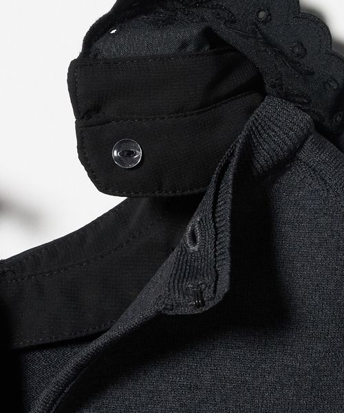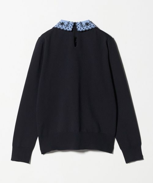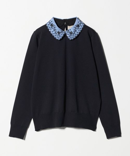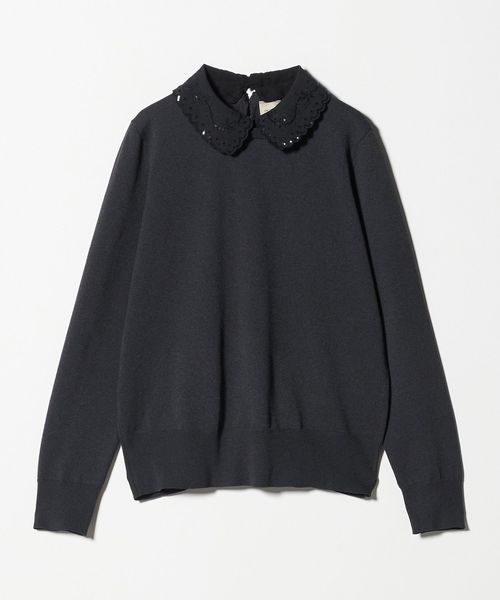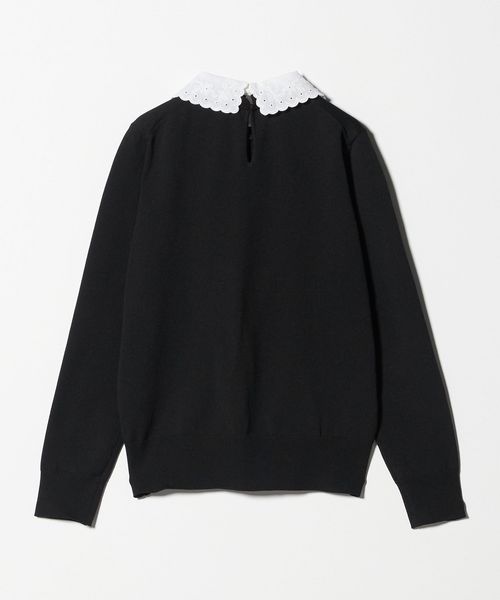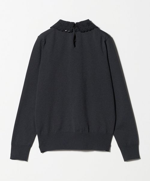 襟を外せば、ベーシックなクルーネックニットとして幅広く着回せる万能ニットトップスです。