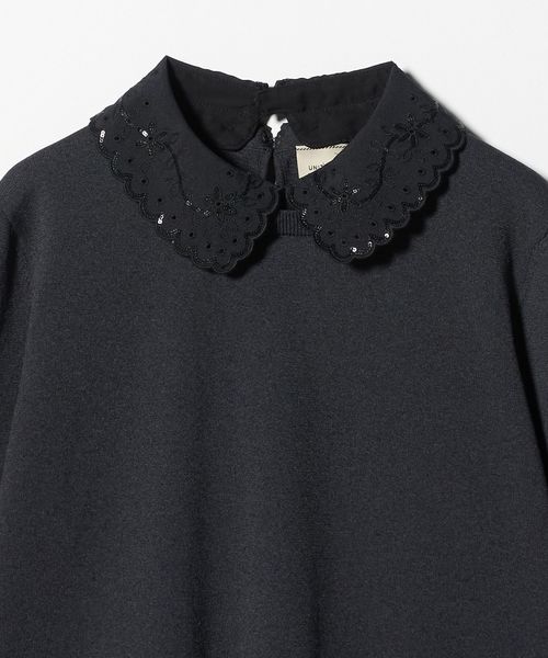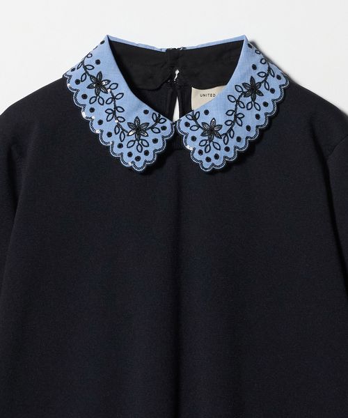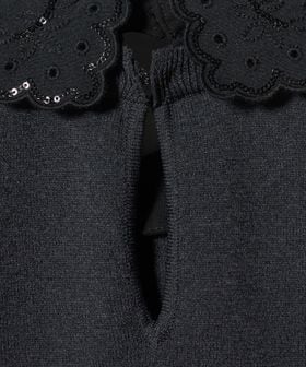 控えめに輝く小さなスパンコール刺繍をあしらった取り外し可能な襟がアクセント。