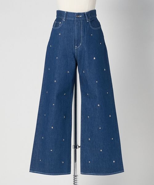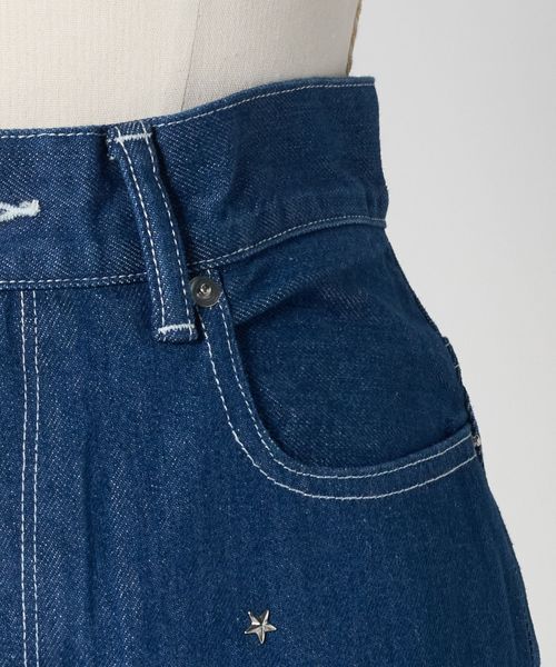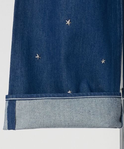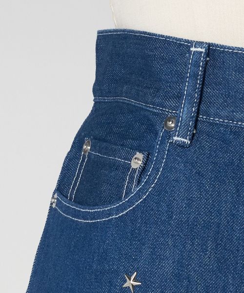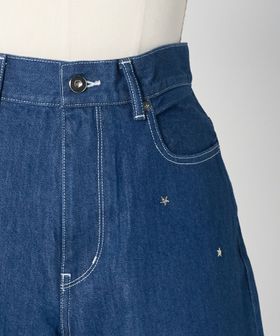 5ポケットに加え、散りばめた星形パーツと白ステッチがデザインポイントです。