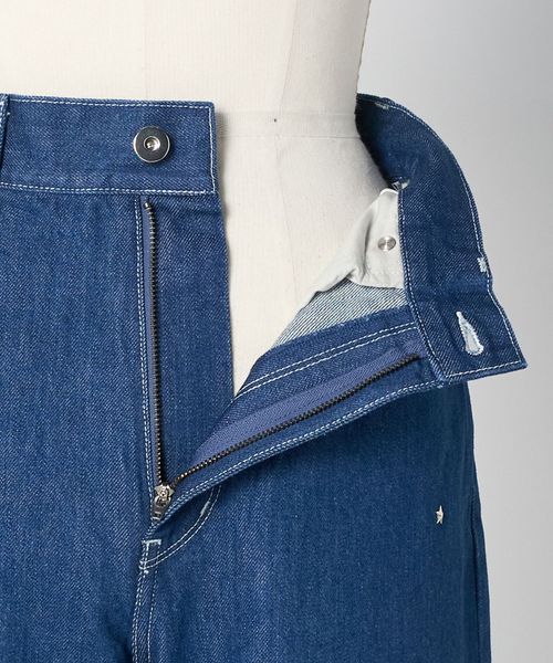 ハイウエストでフィットする腰まわりと、裾まで続くストレートなワイドラインが特徴。