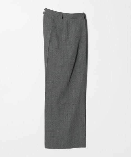 ノータックでセンタープレスをベルト下から入れポイントにした、メンズライクな印象のワイドパンツ。