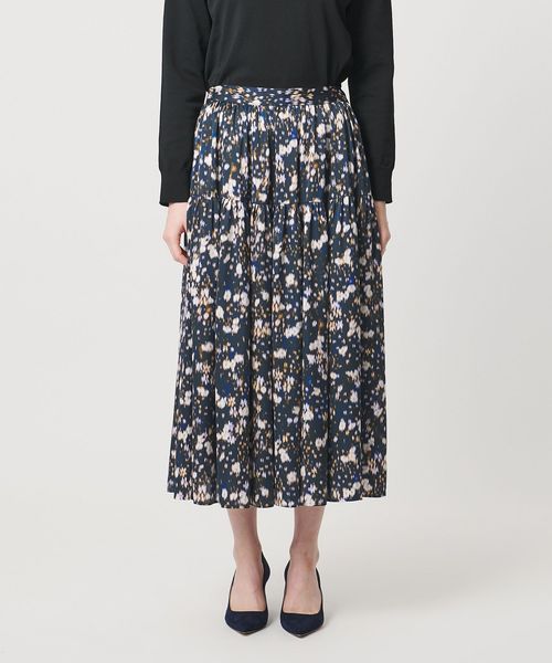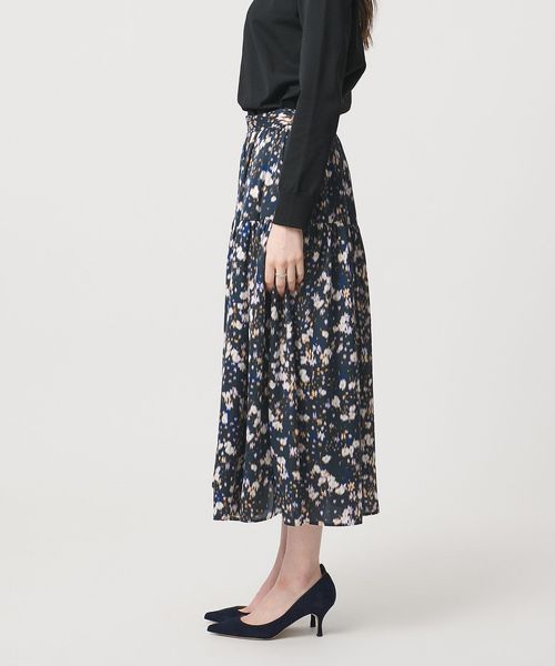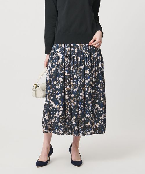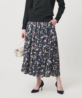 花柄のほぐしプリントが華やかで目を引くギャザースカート。