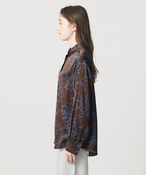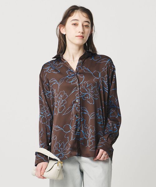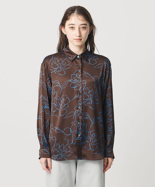 軽やかな艶とフラワープリントが魅せる、上品な一枚