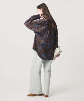 柄の魅力を引き立てるミニマルなデザインで、ゆとりのあるシルエットが特徴です。