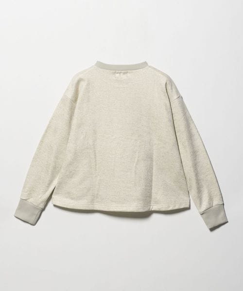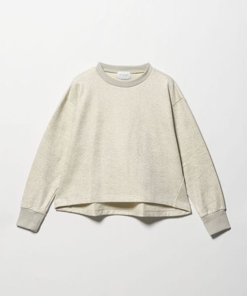 配色リブのデザインや、後ろ下がりの立体的なシルエットが魅力の箔プリントのスウェット。