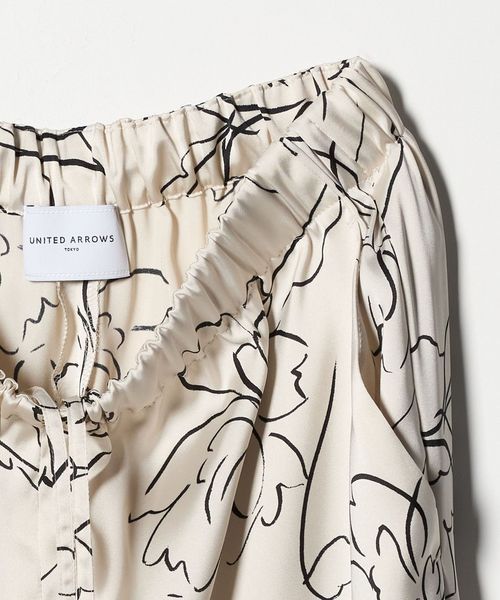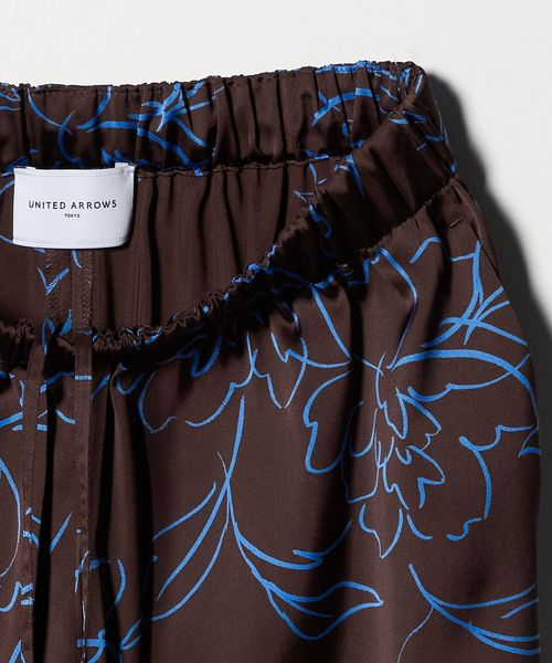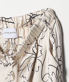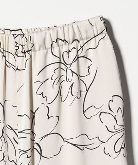 線画のフラワープリントが目を惹くワイドパンツ。