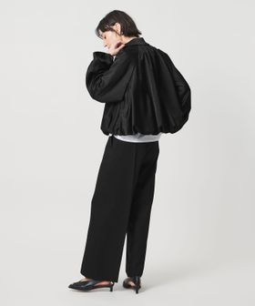 身頃は裏地でふんわりとしたバルーンシルエットに仕立て、裾の内側にはドローコードとストッパーを内蔵しているため、ギャザーの分量調節が可能です。