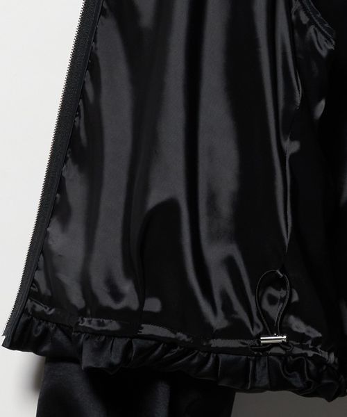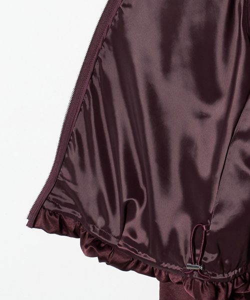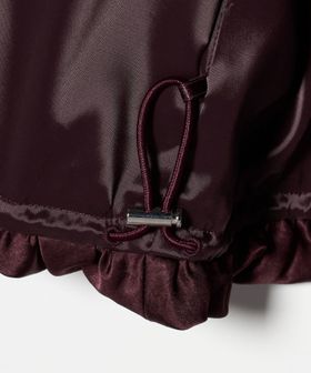 身頃は裏地でふんわりとしたバルーンシルエットに仕立て、裾の内側にはドローコードとストッパーを内蔵しているため、ギャザーの分量の調節が可能です。