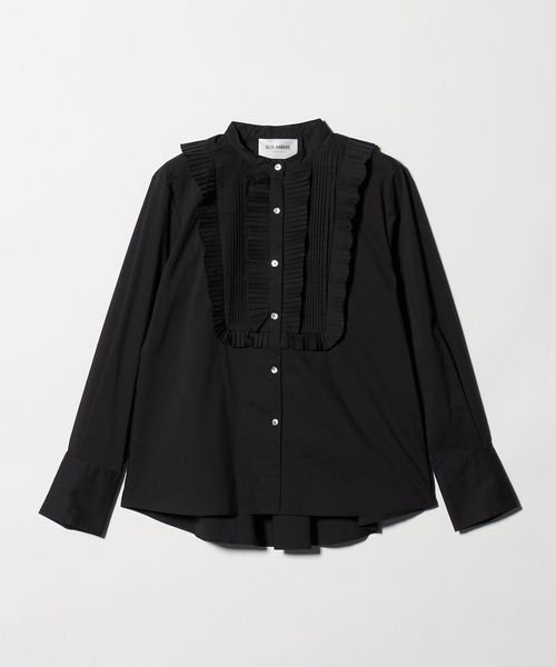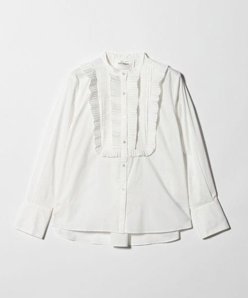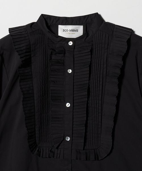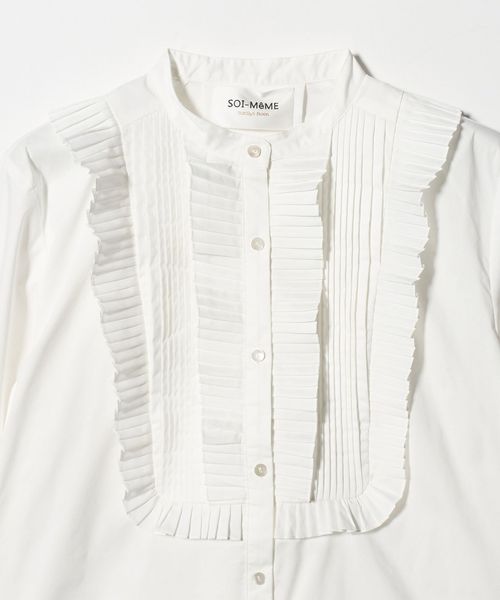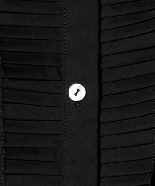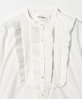 プリーツフリルが印象的なブラウス。