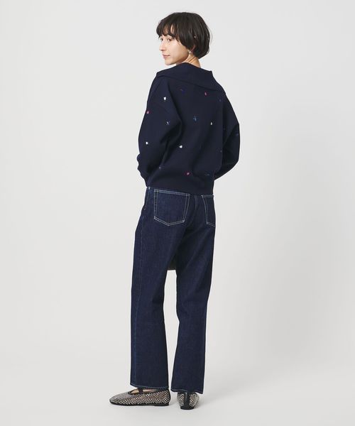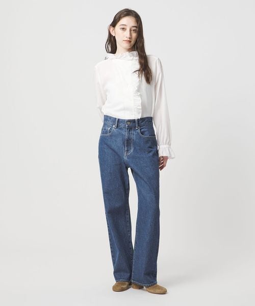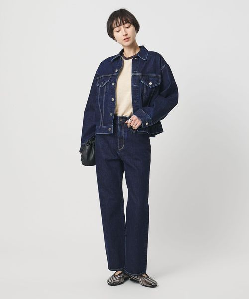 ややローウエストで、腰まわりはタイトめですっきりとしたストレートデニム。