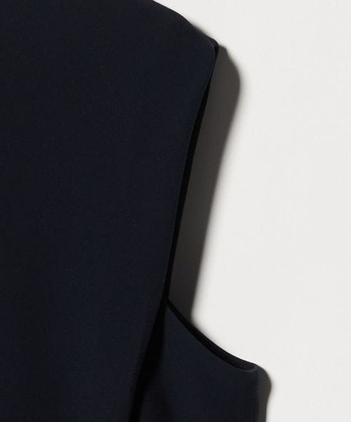 落ち感のある素材が生み出す、女性らしいシルエットが魅力のノースリーブワンピース。