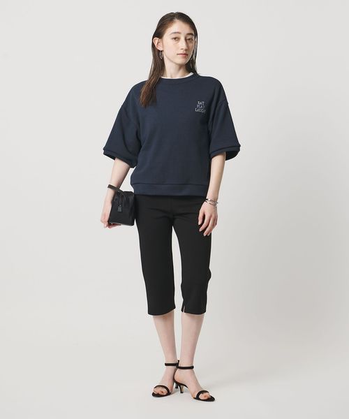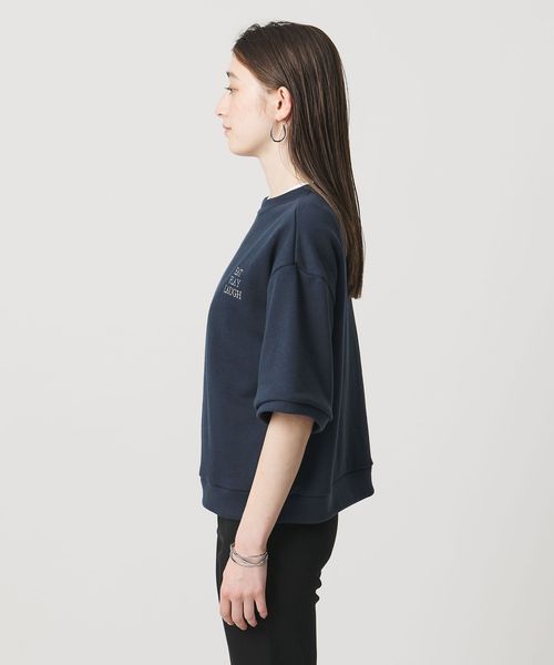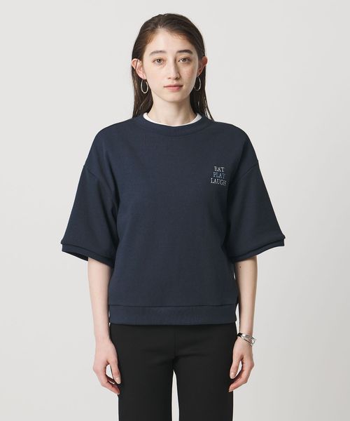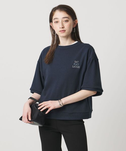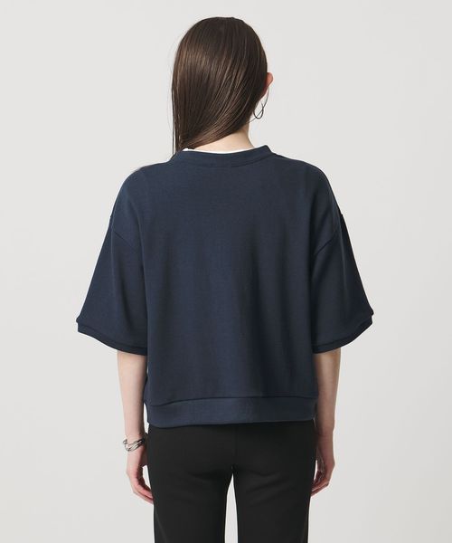 ドロップショルダーの程よくリラックスした雰囲気に、すっきりとした着丈と計算された袖丈を組み合わせた、着回しやすいショートスリーブスウェット。