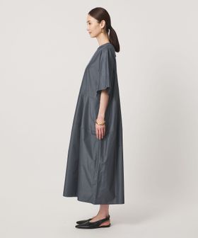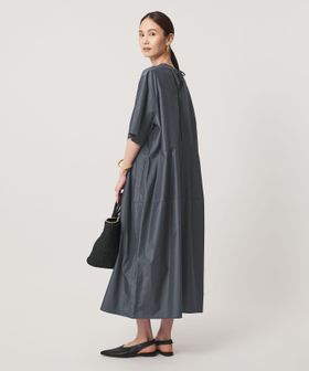 襟ぐりは控えめなボートネック風のラウンドネックで、上品さをプラス。