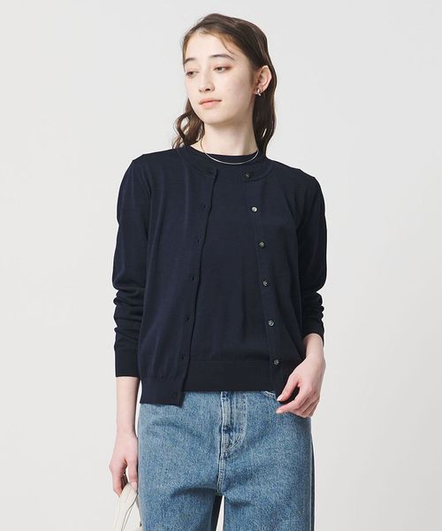 ボトムを選ばないベーシックなシルエットのカーディガン。